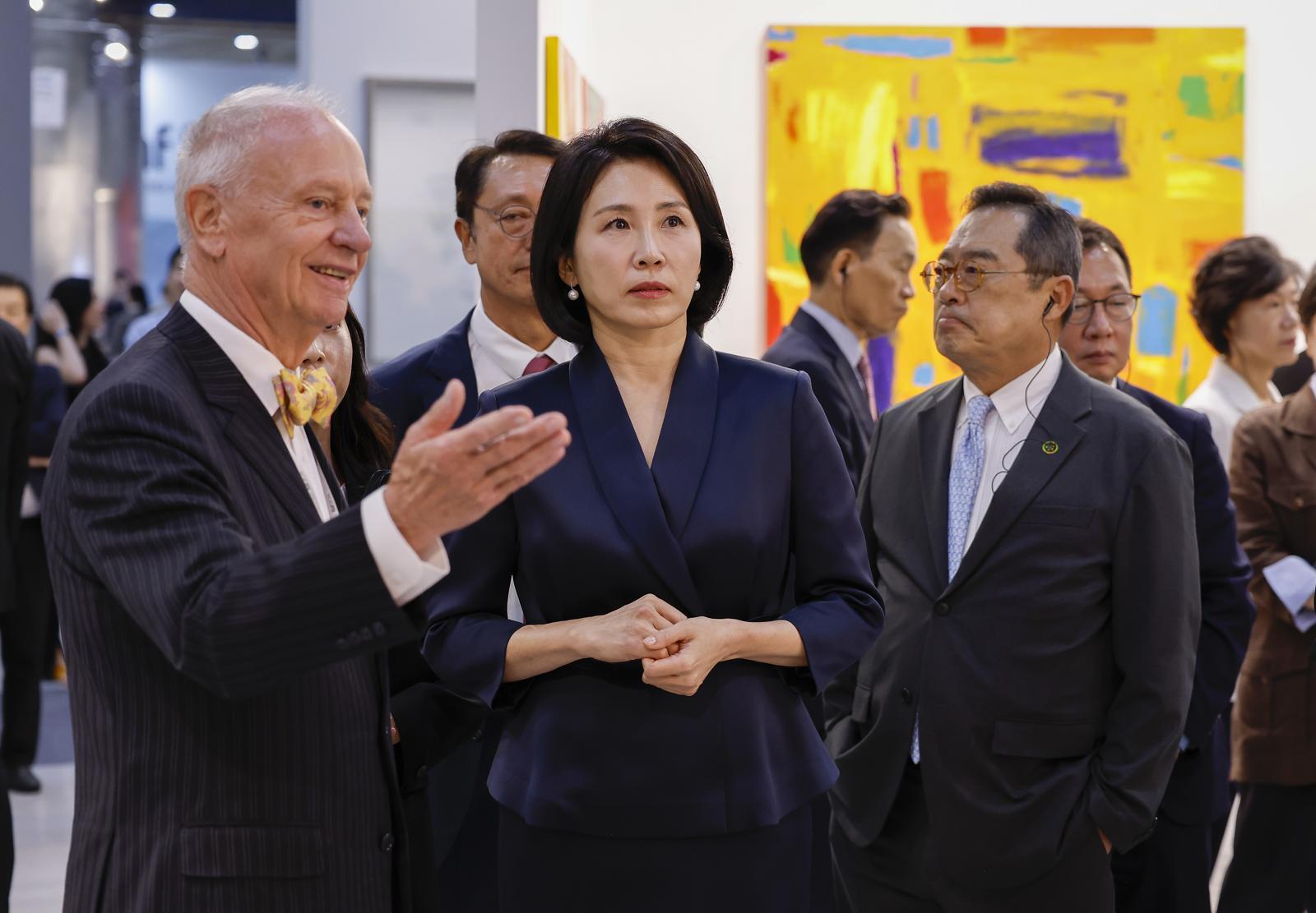 이재명 대통령 부인 김혜경 여사가 3일 서울 강남구 코엑스에서 열린 국내최대 아트페어 ‘키아프 서울(Kiaf SEOUL)’을 찾아 전시를 둘러보고 있다. (공동취재) 2025.09.03 뉴시스김혜경 여사가 이석