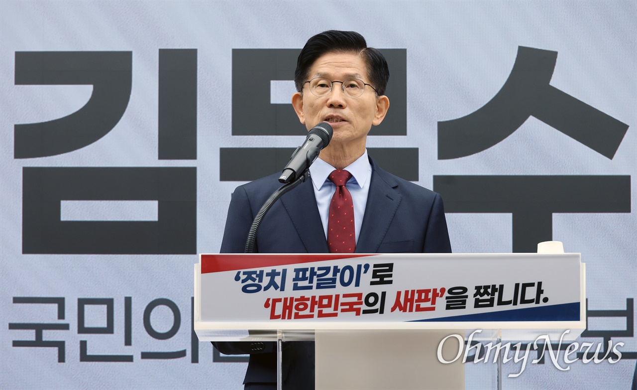 [서울=뉴시스] 정윤아 한재혁 한은진 기자 = 손학규 전 바른미래당 대표가 22일 김문수 국민의힘 대선후보 지지선언을 했다. 손 전 대표는 이날 오전 서울 여의도 국민의힘 당사에서 "위기의 대한