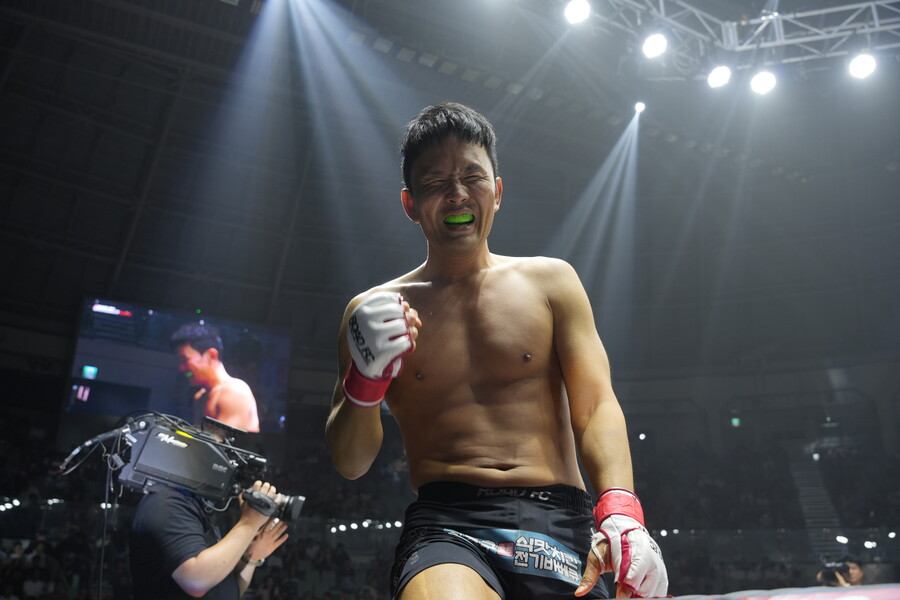 [스포티비뉴스=장충, 김건일 기자] '싸우는 개그맨' 윤형빈이 '원펀맨'이 됐다. 윤형빈은 28일 서울 장충체육관에서 열린 로드FC 078 스페셜 이벤트 매치에서 1라운드 1분 42초에 정만수(활동명 밴쯔