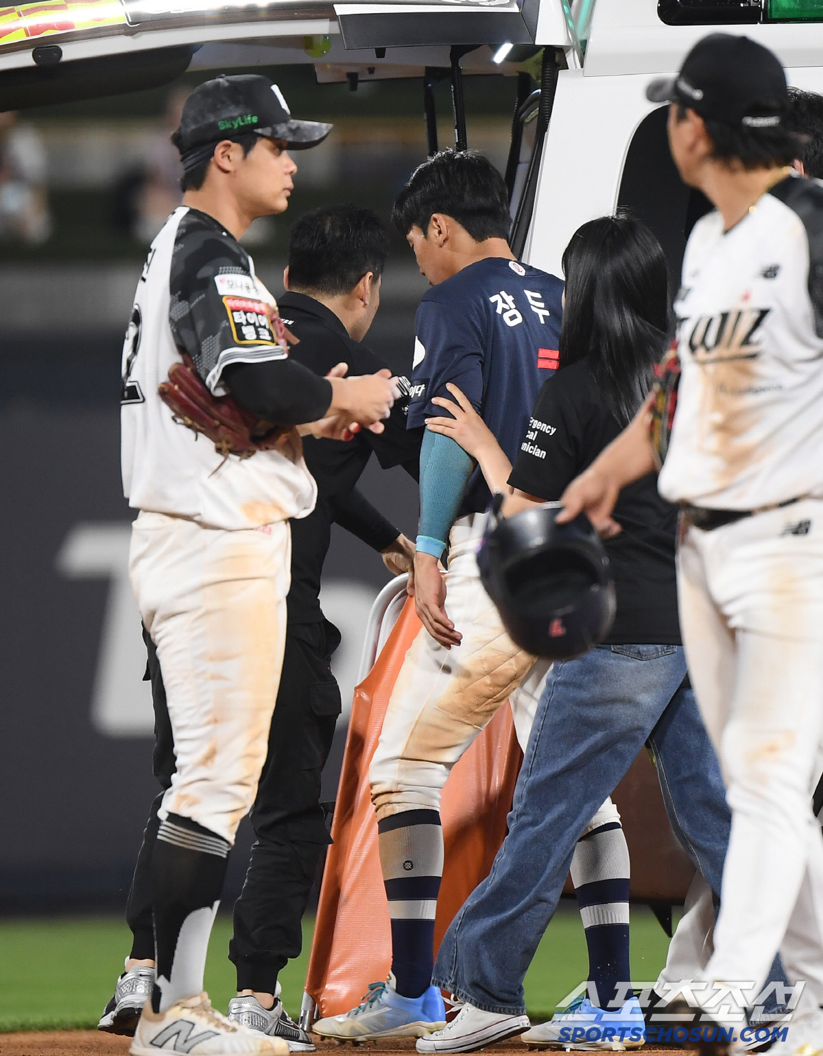 [수원=스포츠조선 김용 기자] 어쩌다 이런 일이. 롯데 자이언츠가 다시 부상 악령에 울 수도 있다. 최근 롯데 상승세를 이끌던 톱타자 장두성이 구급차로 긴급 이송됐다. 장두성은 12일 수원케이