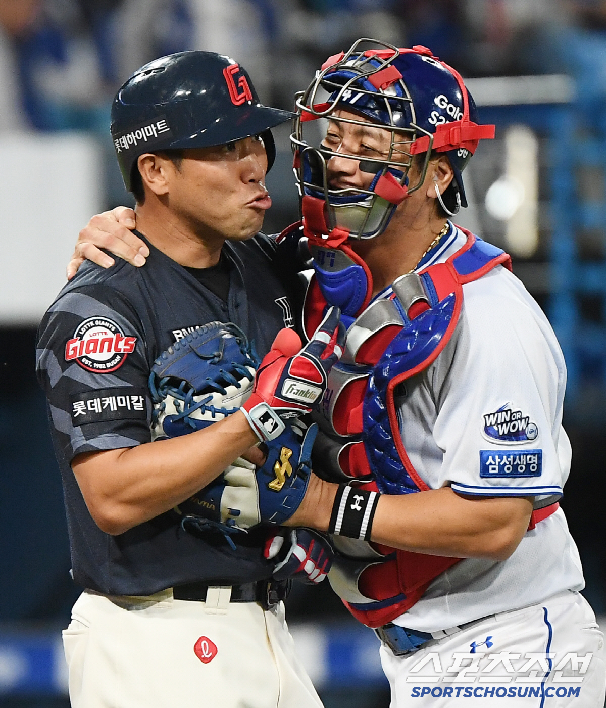 29일 대구 라이온즈파크에서 열린 롯데-삼성전. 5회초 2사 전준우가 최원태의 공에 맞으며 벤치 클리어링이 발발했다. 강민호가 전준우를 말리고 있다. 대구=정재근 기자 cjg@sportschosun.com/2025.5.29/